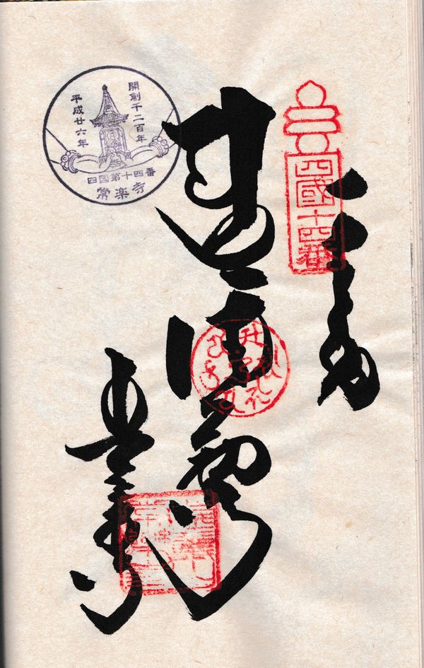 四国八十八ヶ所霊場開創1200年を記念して、各寺院にて記念スタンプと記念御影をいただきました。各寺院にて1200年の記念スタンプ、そして赤の記念御影です。
