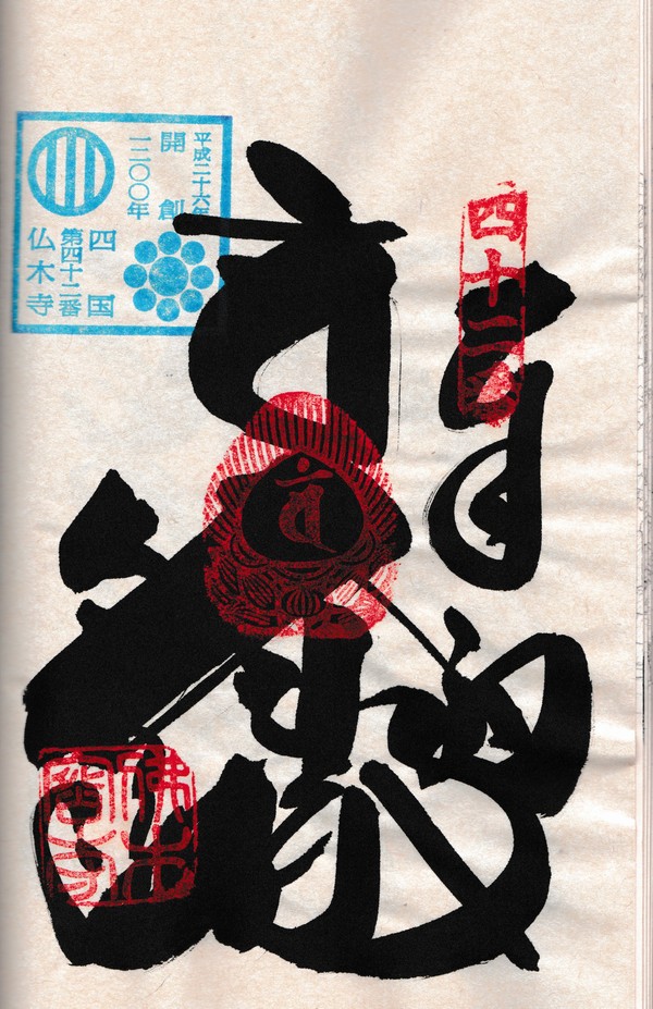 四国八十八ヶ所霊場開創1200年を記念して、各寺院にて記念スタンプと記念御影をいただきました。各寺院にて1200年の記念スタンプ、そして赤の記念御影です。