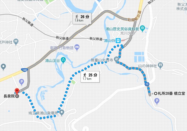 | アクセス | 電車:秩父鉄道「浦山口駅」から徒歩15分。バス:西武鉄道「西武秩父駅」から西武観光バス「浦山常盤橋ゆき」の「浦山口」下車徒歩15分。 27番から:徒歩18分(1.3km) |